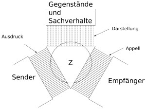 Karl Bühler hat 1999 den Mechanismus der sprachlichen Austauschs folgendermaßen in einem Modell dargestellt: