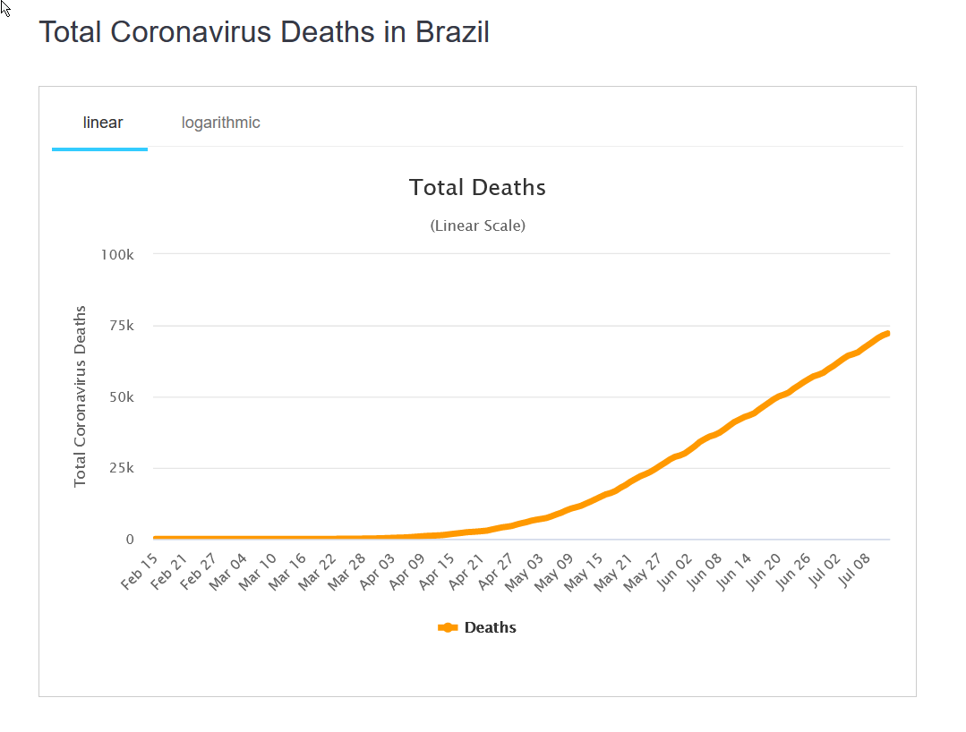 „Dieses Jahr sind weltweit bereits 31,361 Millionen Menschen laut der Worldometer Live-Statistik bereits verstorben (Quelle – Stand 13.07.2020, 16:16 Uhr). Allein im Jahre 2018 starben 0,125 % der Weltbevölkerung an Krebs (ca. 9,5 Millionen), davon allein 238.000 in Deutschland (0,29 % der bundesdeutschen Bevölkerung) (Quelle1, Quelle2). Gemäß der WHO gehen die Schätzungen der jährlichen Influenzatoten weltweit zwischen 290.000 bis 650.000 (Quelle). In Brasilien, das stark von der Coronapandemie betroffen ist, sind bisher 0,03403% der Bevölkerung mit einem positiven Corona-Test verstorben. (Quelle: Stand: 13.07.2020, ca. 16:00 Uhr). Dies entspricht der absoluten Zahl von 72.150 Toten, bei einer Bevölkerung von 212.000.000 Menschen. Bereits 1,213 Millionen Menschen haben eine Infektion überlebt (Quelle).“